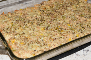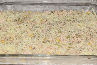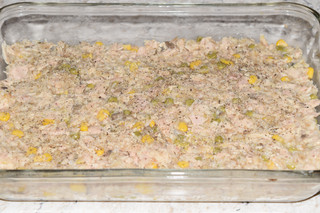 7. Spray a casserole dish with olive oil and spread you mixture into it.