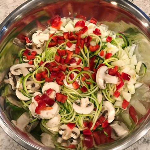 Before anything I spiralized each zucchini and places the zoodles into a large bowl.